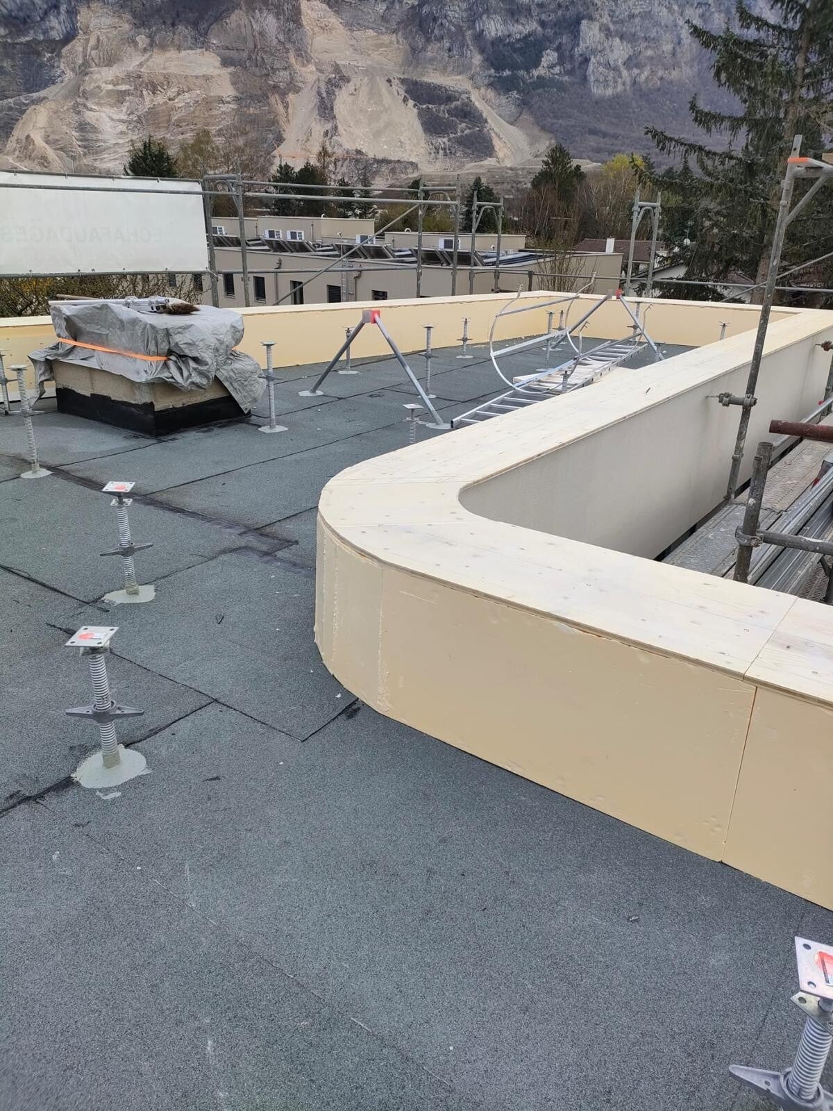 Je pose également les protections d'étanchéités ( rives, couvertines, dalles sur plots, toiture végétalisé, coupoles, et autres...)